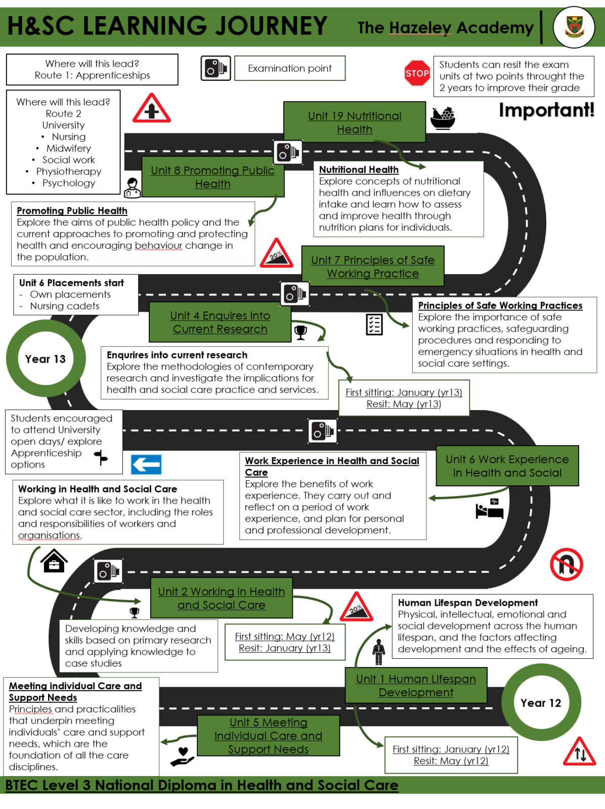 Complimenting other subjects’ and the wider school, you will experience and study a vast range of Health and Social Care topic areas requiring them to demonstrate maturity and respect for others, coupled with high expectations means you will aspire to excellence. You will become confident and fully prepared to manage their emotions for the many challenges and opportunities they face for their health and well-being, preparing them for life and inspiring them to work in Modern Britain.
